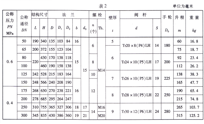 船用不锈钢法兰闸阀结构图与尺寸表